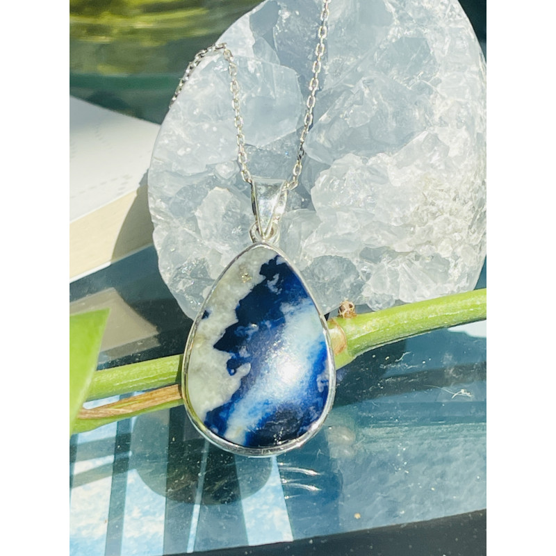 Découverte à la fin des années 60, l'Afghanite est un trésor d'orient, gemme cousine de la Lazurite et du Lapis Lazuli.