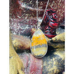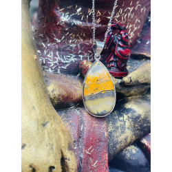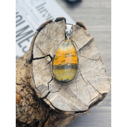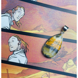 Ce pendentif, qui semble dessiner un vrai paysage poétique tel un horizon, est idéale pour le foie, pancréas et estomac. Cette roche de la famille des Jaspes demeure une pierre solaire calcifiante riche en énergies telluriques.