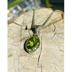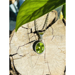 Pierre semi-précieuse véritable composée de Silicate de magnésium ferreux et Dioxyde de silicium provenant d'Australie, et sertie sur une monture en argent 925 par nos soins en Autriche.